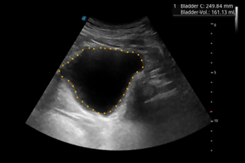 一鍵自動(dòng)識(shí)別膀胱壁及自動(dòng)測(cè)量膀胱容積,不受膀胱形狀和大小的限制,幫助醫(yī)生快速精準(zhǔn)獲得測(cè)量的數(shù)據(jù)。